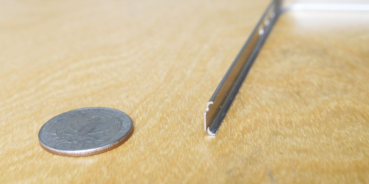 この厚さ問題を解決するために、私たちはアルミの王様と言われるジュラルミンを曲げ加工によりiPhoneの形に曲げた後、iPhoneの横の溝に合わせて切削するという複雑な工程を採用しました。