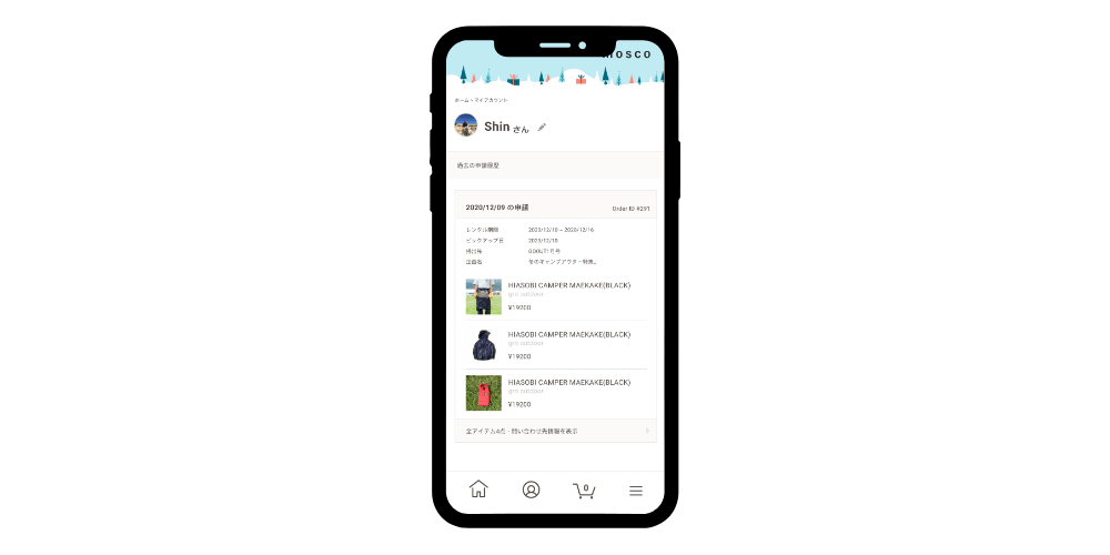 LINE上で動くアプリのマイページでは、スタイリストが自身でレンタルしたアイテムについて必要な情報をクイックに閲覧することができます。