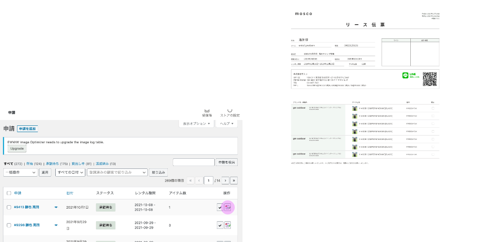 明治通り巡礼を行うスタイリストは、1日に4〜5件のプレスルームを回るため非常に多忙です。moscoでは、これまで伝票の作成に30分の時間を要していましたが、PDFの帳簿システムを組み込むことで伝票の出力が1秒で完了するようになりました。