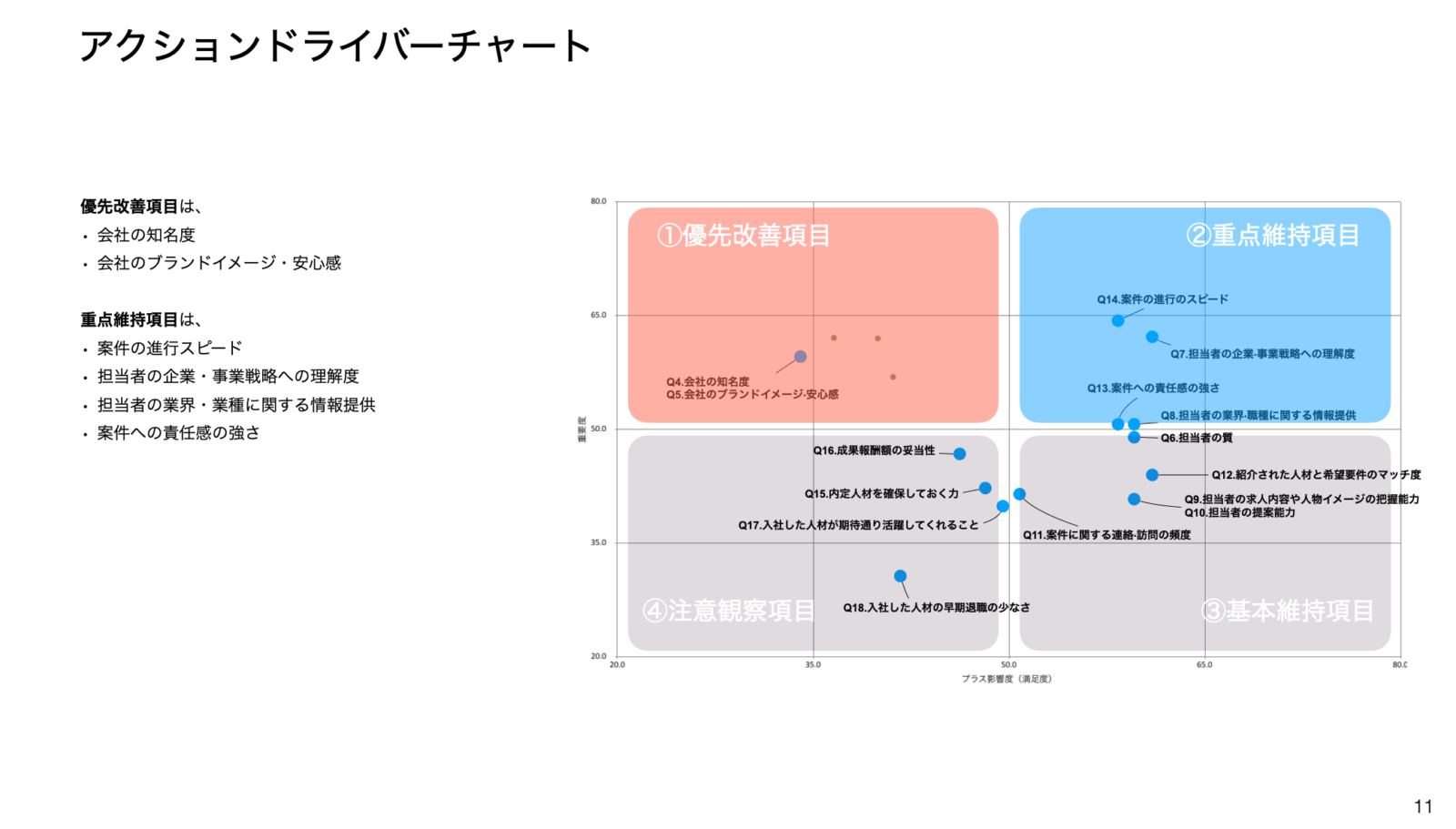 NPS調査は通常カスタマージャーニーに基づいて体験を解き明かし設問をしていきますが、toCとは違いリクルートメントエージェンシービジネスのカスタマージャーニーが特殊であるため、アンケート設計そのものの難易度がとても高かったです。
