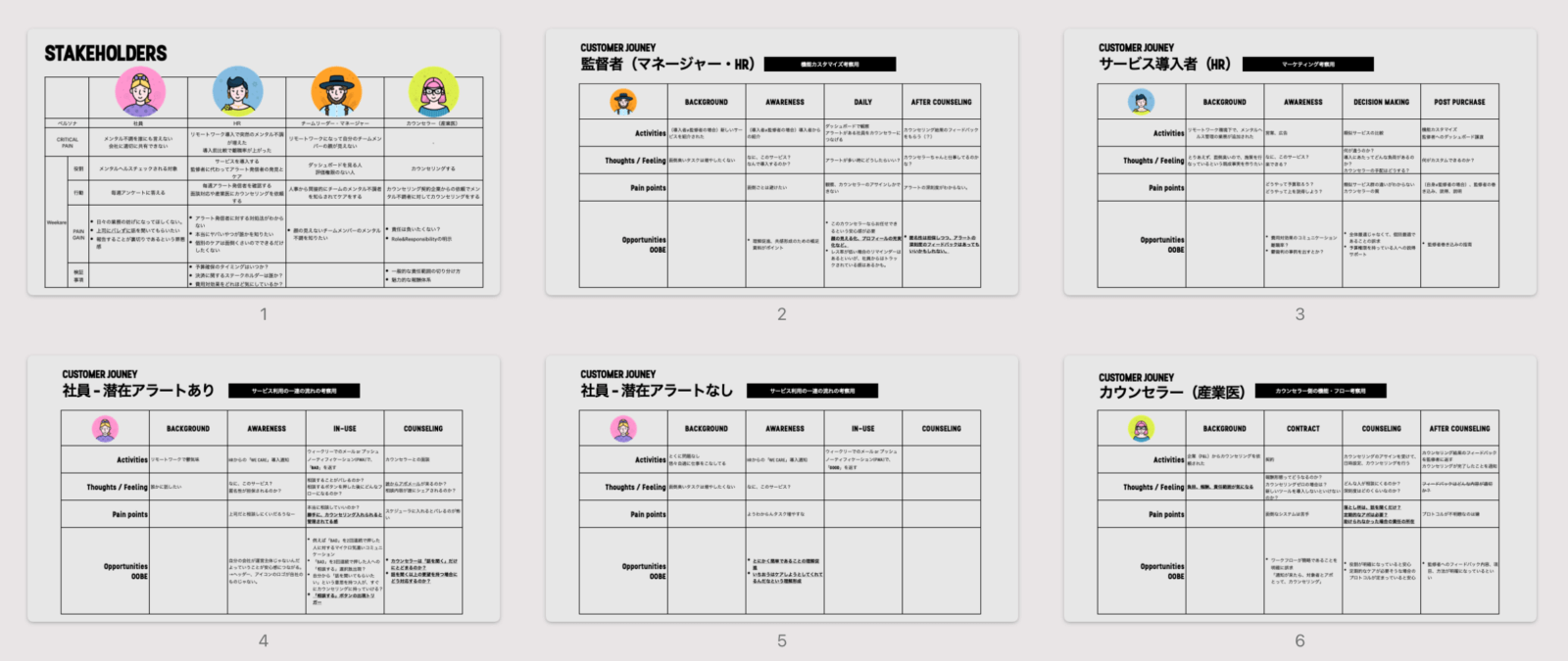隠れたGain/Painやメンバー間でのすり合わせを行うために、それぞれのペルソナのジャーニーを作りました。